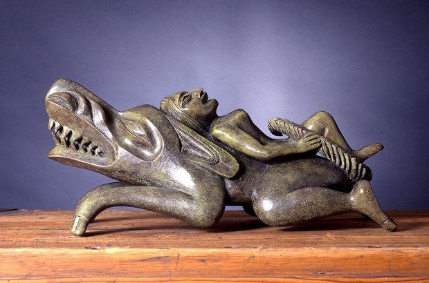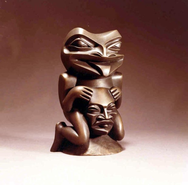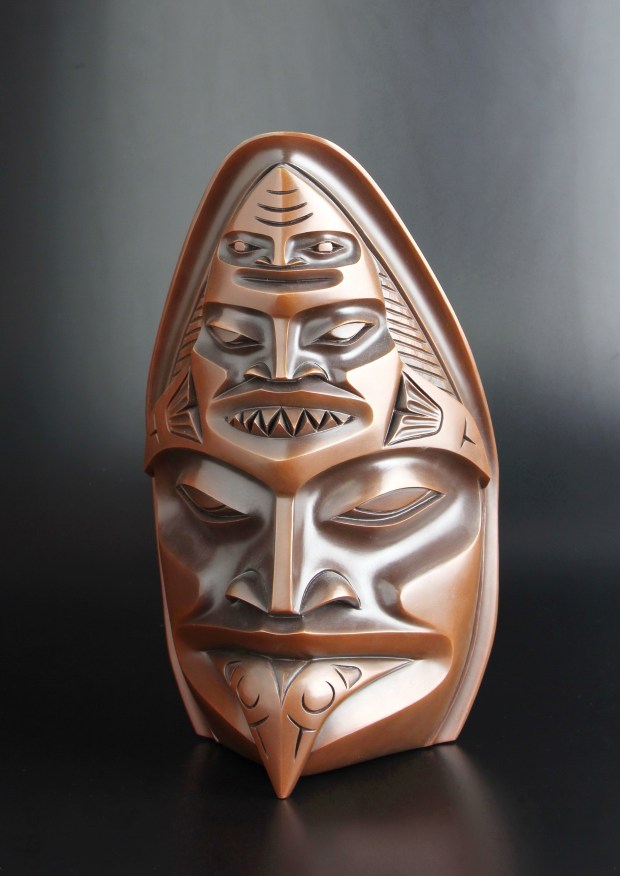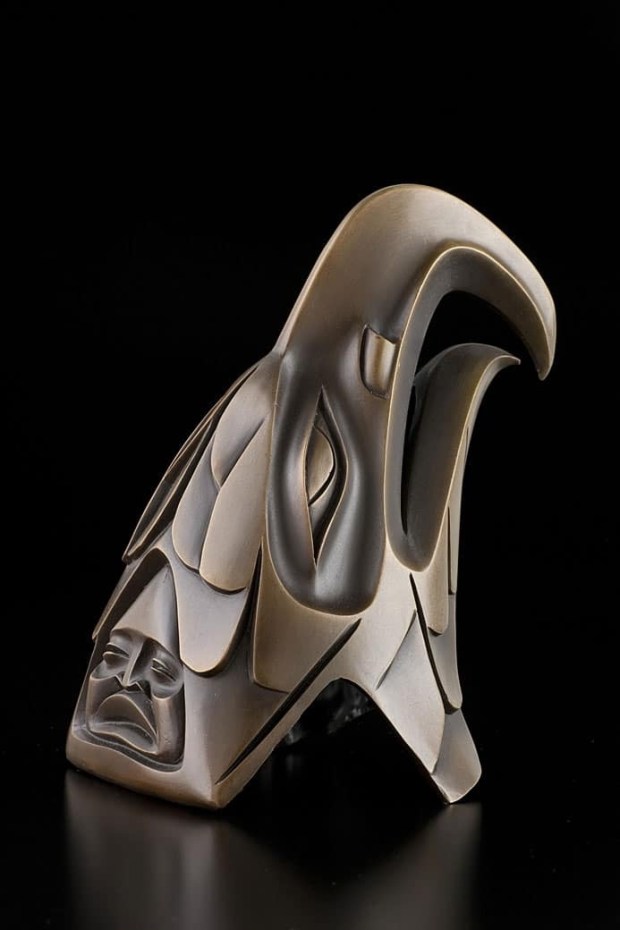 “I have been carving alder and cedar for over thirty years. For the past eight years, I have been studying and sculpting bronze. Bronze has a different feel to it. It’s new, and it’s a challenge to make it good. Our people were great sculptors. They knew as much about sculpture as any other great cultures in the world. The great old northwest coast pieces in wood would make great bronze sculptures today.