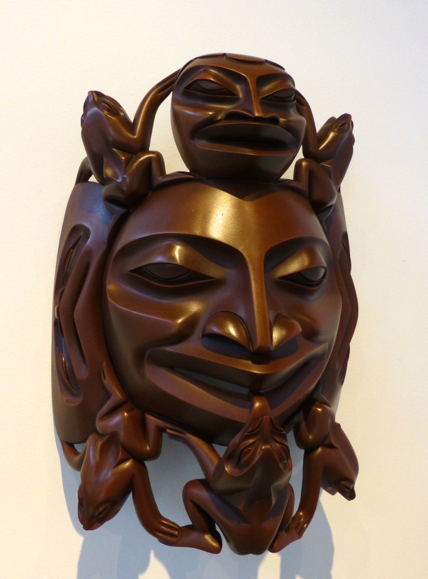 “Tlingit people made copper masks, frontlets, jewelry and rattles, and bronze in 90 per cent copper. Our art has to evolve otherwise it will die. The old master artists carved bone, copper, gold, horn, ivory, silver, stone and wood. My great grandfather was a carver. If he were carving today, he would have gone “to town” with all the new tools and materials. I often wonder where the art would be today if our people did not stop carving for all those years. We have to make our art real for our people today.”