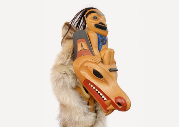 Bob has carved stunning masks with a wolf motif – the long nose, sharp focused eye, gleaming white teeth.