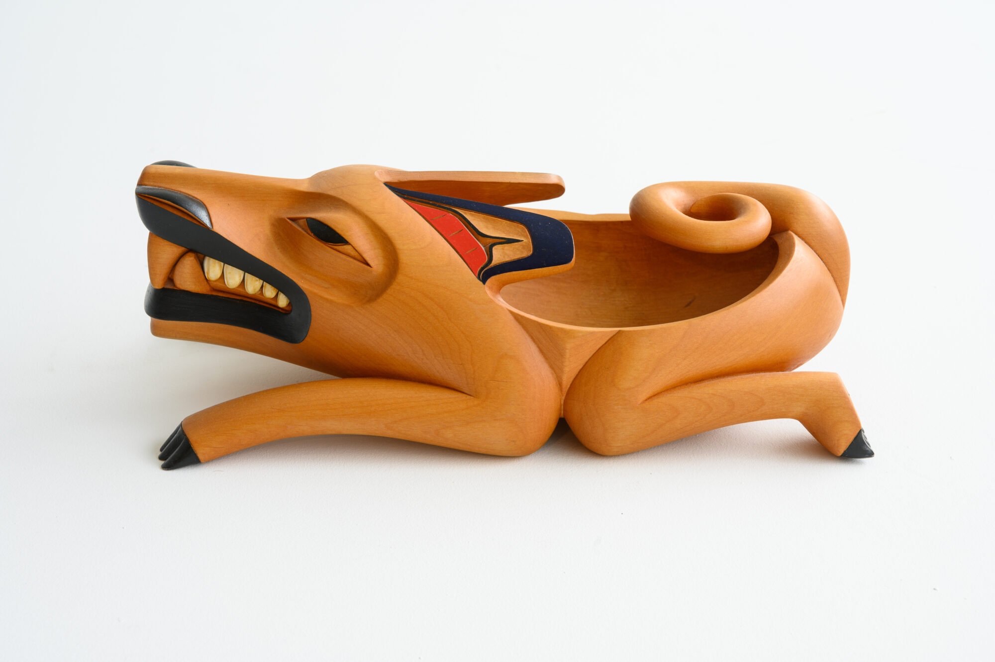 Bob is known for his abilities to blend contemporary style with traditional Tahltan-Tlingit sculptural art. He uses traditional alder, red cedar, and yellow cedar wood in his carvings.