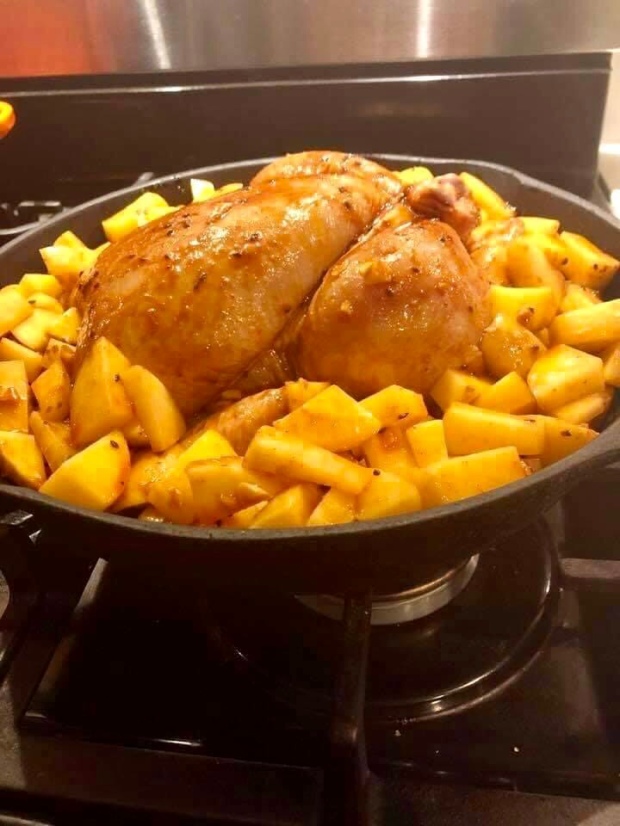 Don’t worry about your potatoes even if they are ready and your chicken is not. Just keep them in the frying pan with your chicken.