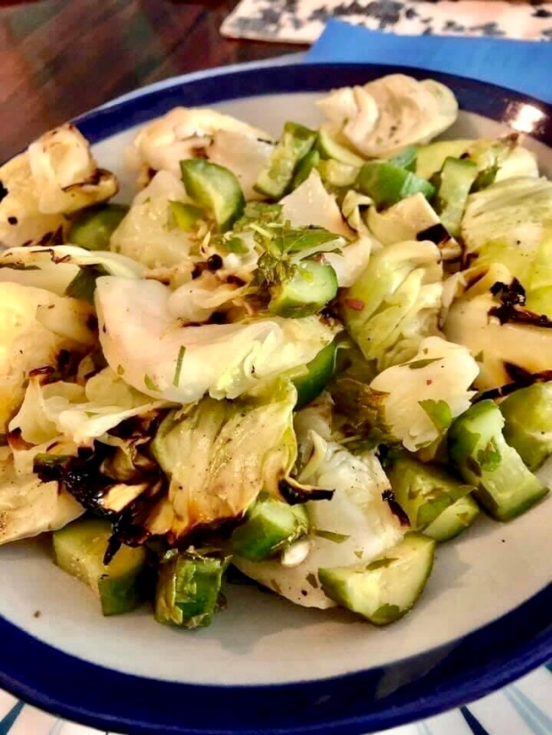 This dinner is for two, grilled cabbage and fresh corn, small nugget potatoes. And there will be enough chicken for leftovers.
