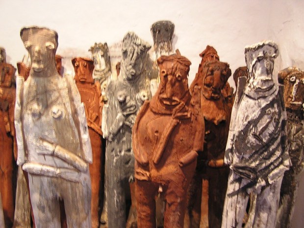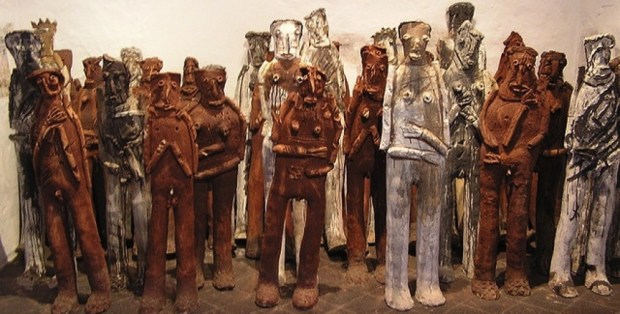 The clay life-sized figurers, each four feet, four inches tall, weighing 150 pounds, depicting the harsh lives of migrants.